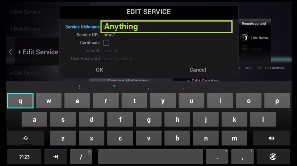 Enter Service Nickname (Any name).